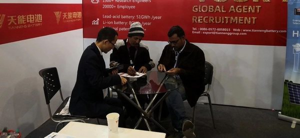 展会期间,火红的天能展台吸引了众多现场客户的关注,他们在天能工作人员热情的介绍下,全面地了解了天能高科技产品和专业的服务理念。多家客户现场签定了合作意向。